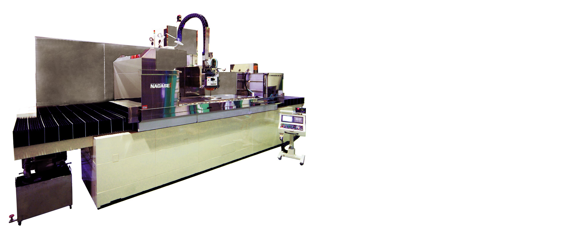 The table, which could be easily corroded due to ultra-hard materials and water-soluble grinding fluid, is protected by a covering made mostly of stainless steel. This design maintains accuracy for a long period of time, which is illustrative of NAGASE’s philosophy.