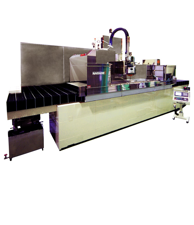 Submicron motion characteristics and NC command value follow-up performance. Because of outstanding straightness, Nagase has a good record of manufacturing long die parts such as T-dies and precision machine parts for machine tools, etc. NAGASE also uses this model in its factory.